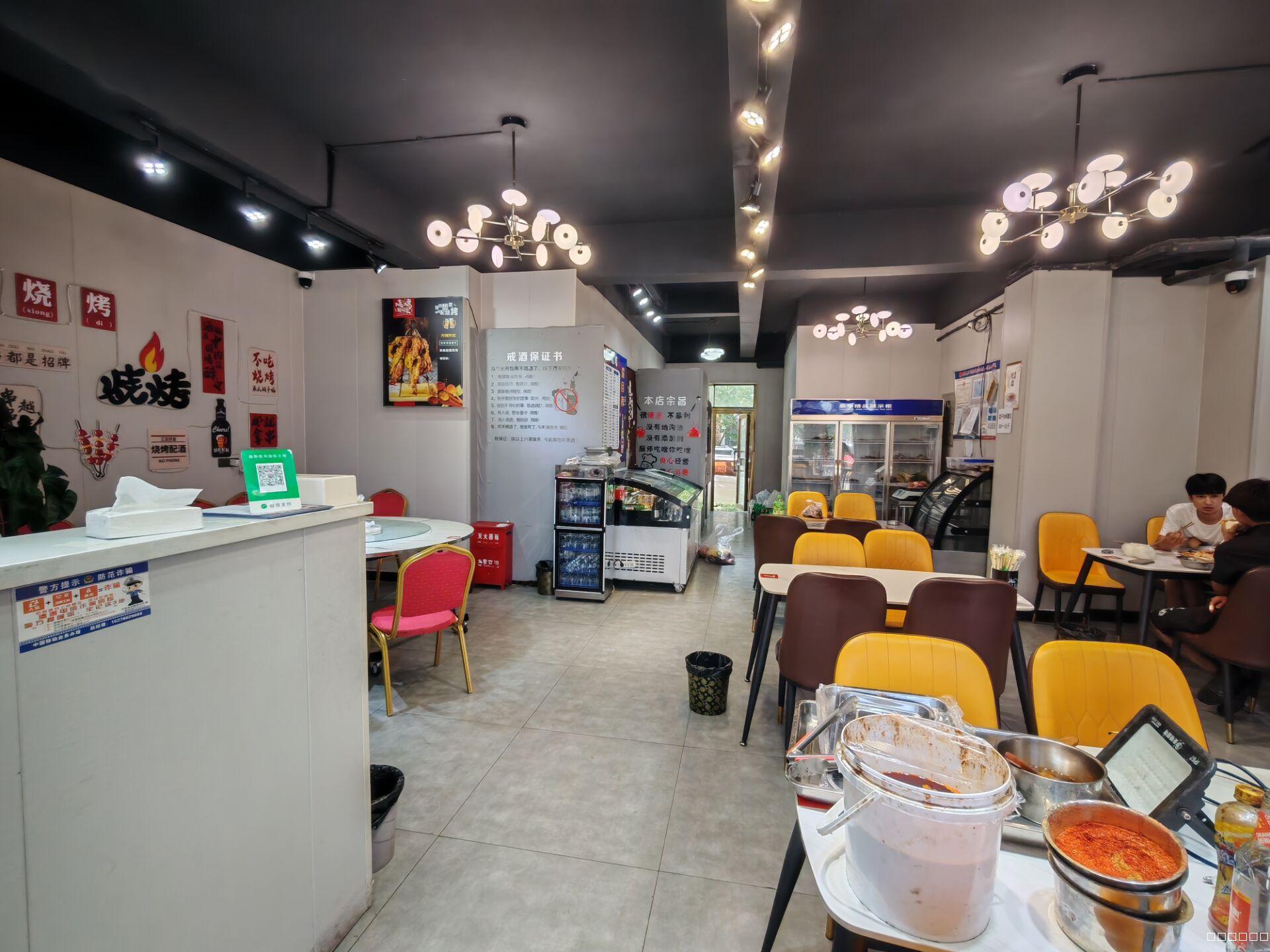 面积97平米,装修精致,有三相电,门口可外摆,可明火,后门直通小区,适合拌面、烧烤、大盘、快餐等多种经营,现转让。