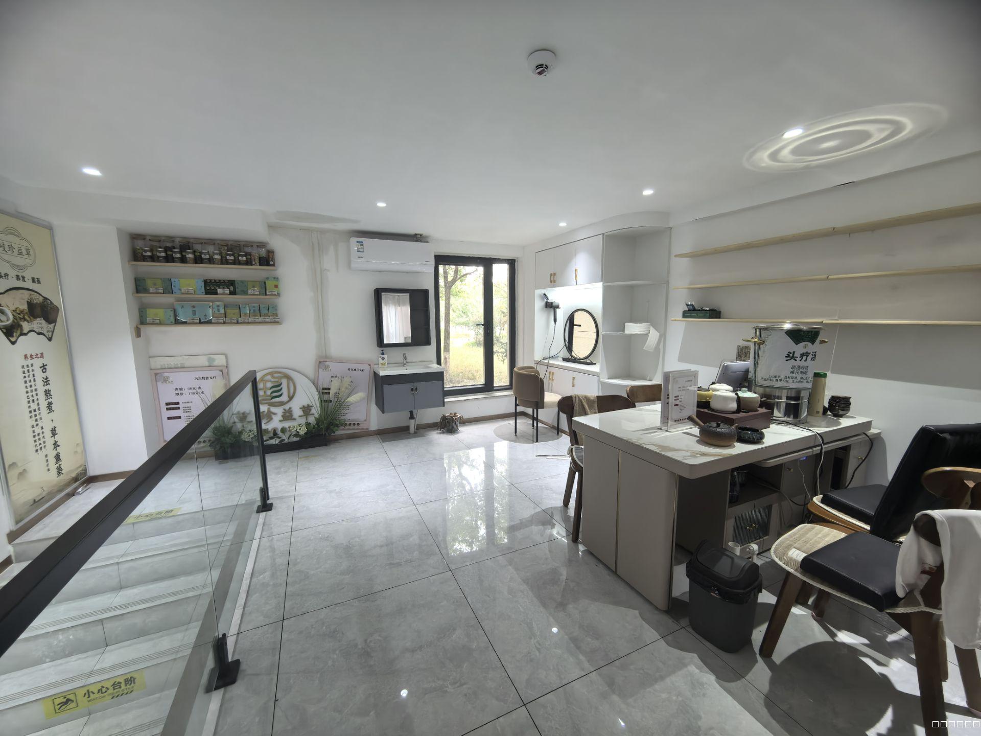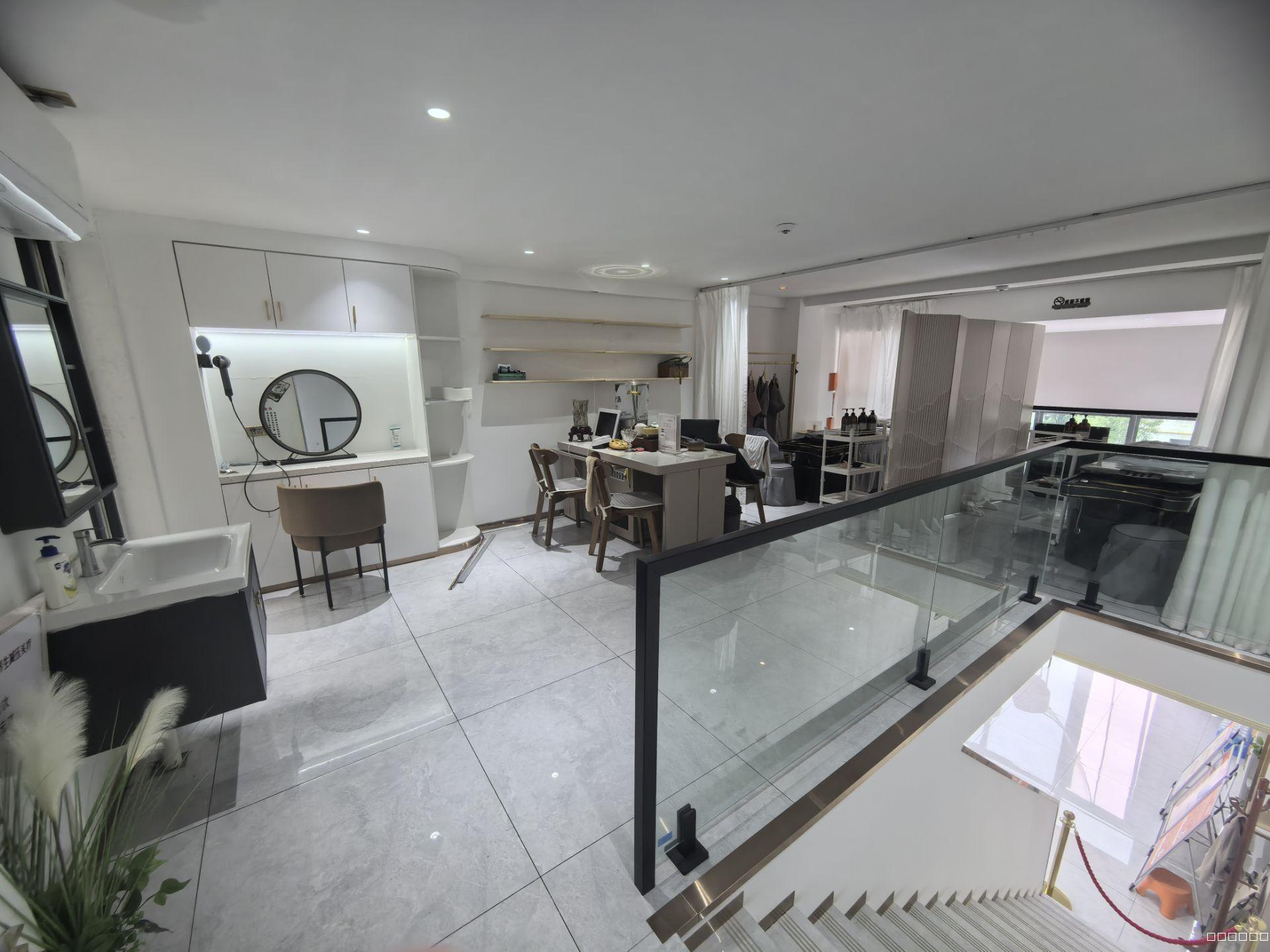面积90平米,上下两层,精装修,设备齐全,上下水,水电充足,有独立卫生间,二楼可放三张美容床,门口停车方便,业态不限,挑高比较高,理发、美容、足疗、鲜花都可以,租金4.5万,整体转让8万。