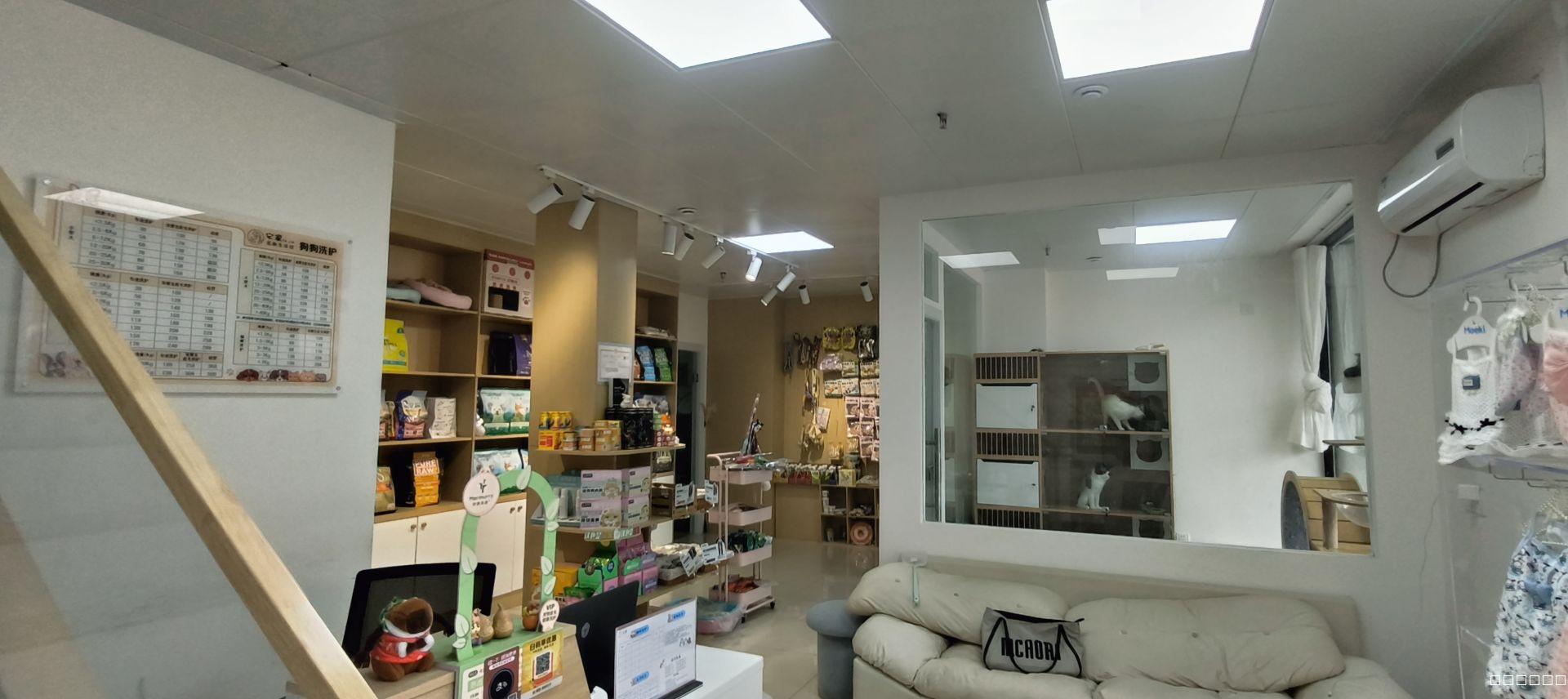 面积88平米,上下两层,精装修,格局方正,门头大,目前做宠物用品,宠物业态,美容美体,洗护,寄养,猫狗区是分开的,设备当时出入的都是好的,内有独立卫生间,独立空调设备,因个人原因转让,租金7万,整体转让6万。